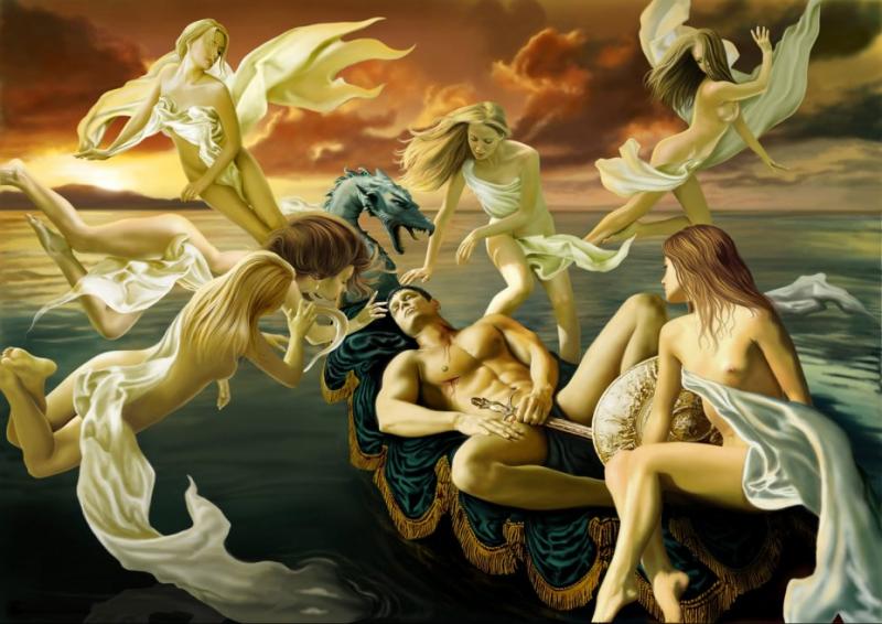 Картина-2,- по-моему- " Сны Бальдра" - Старшая Эдда. ( Бальдру, сыну Одина снятся тревожные сны о неминуемой смерти.