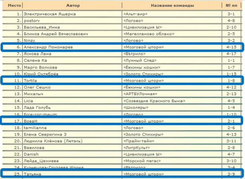 Команда «Мозговой шторм», автор Александр Пономарев