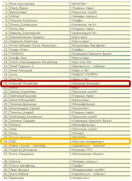 команды "Стрела", капитана команды "Браконьеры" и тех, кого уже заменили.