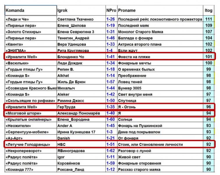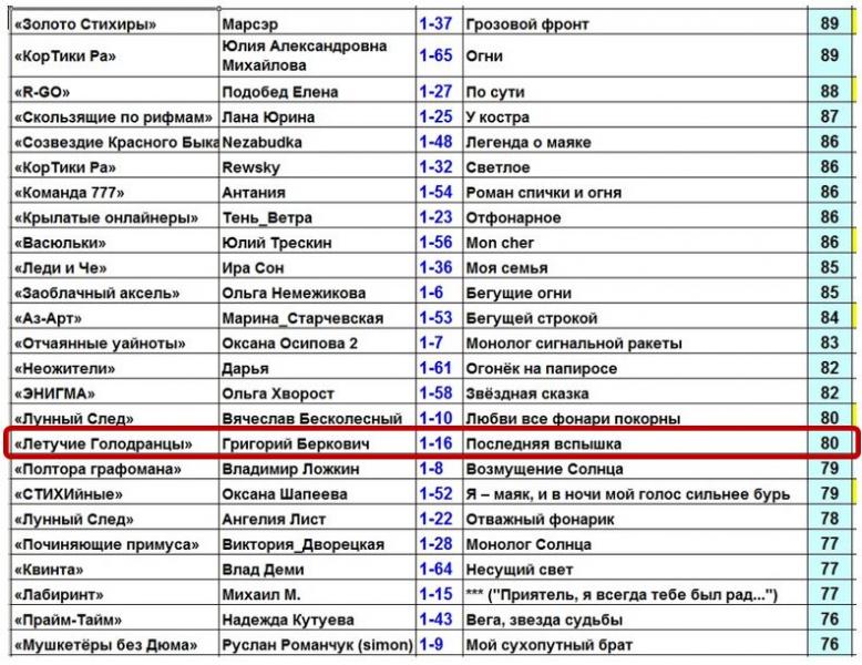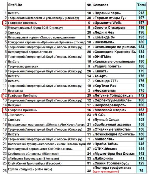 Награждение команд баллами Литсети и Стихи.ру мы сделаем чуть-чуть позже (надо обсудить этот вопрос и принять решение).