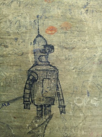 Набросок шариковой ручкой на парте. Воспоминания о просмотренном прошлой ночью фильме ужасов.