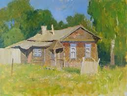 Картина «Домик в деревне». Евгений Гололобов. Масло. Холст. Картина написана в жанре деревенский и сельский пейзаж, в стиле реализм. Реали́зм — эстетическая и художественная позиция, согласно которой задача искусства состоит в том, чтобы как можно точнее и объективнее изображать действительность. Картины конкретно этго художника пока не нашли своего всемирного признания, но заняли высокие места на областных и краевых выставках.