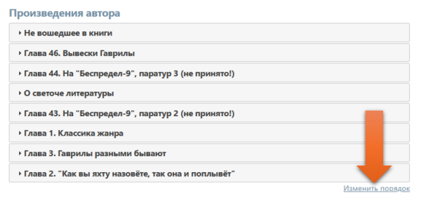 Итак, если кто сумел забраться в "книгу", то там ляпотища несказанная - произведения стоят в  порядке их проставленных весов (я выбрал ту книгу, где видны "номера" у произведений, чтобы  очевидно было):