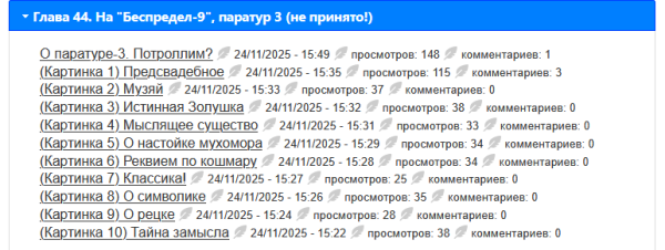 Зато на страничке автора имеем те же произведения в совсем непредсказуемом порядке (нажмите там на  главу 44, например):